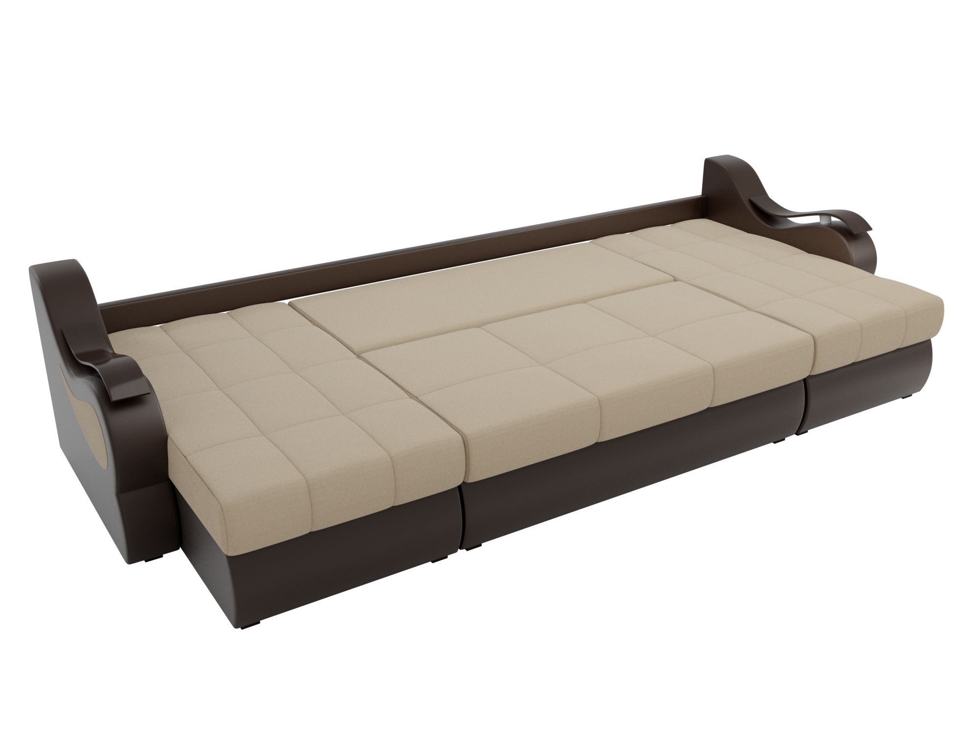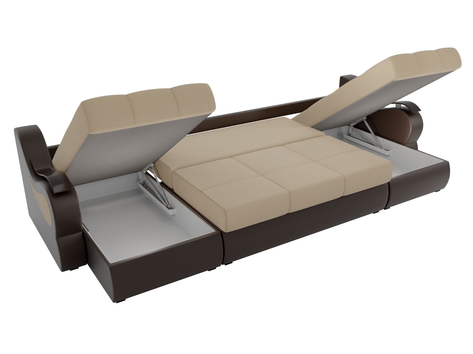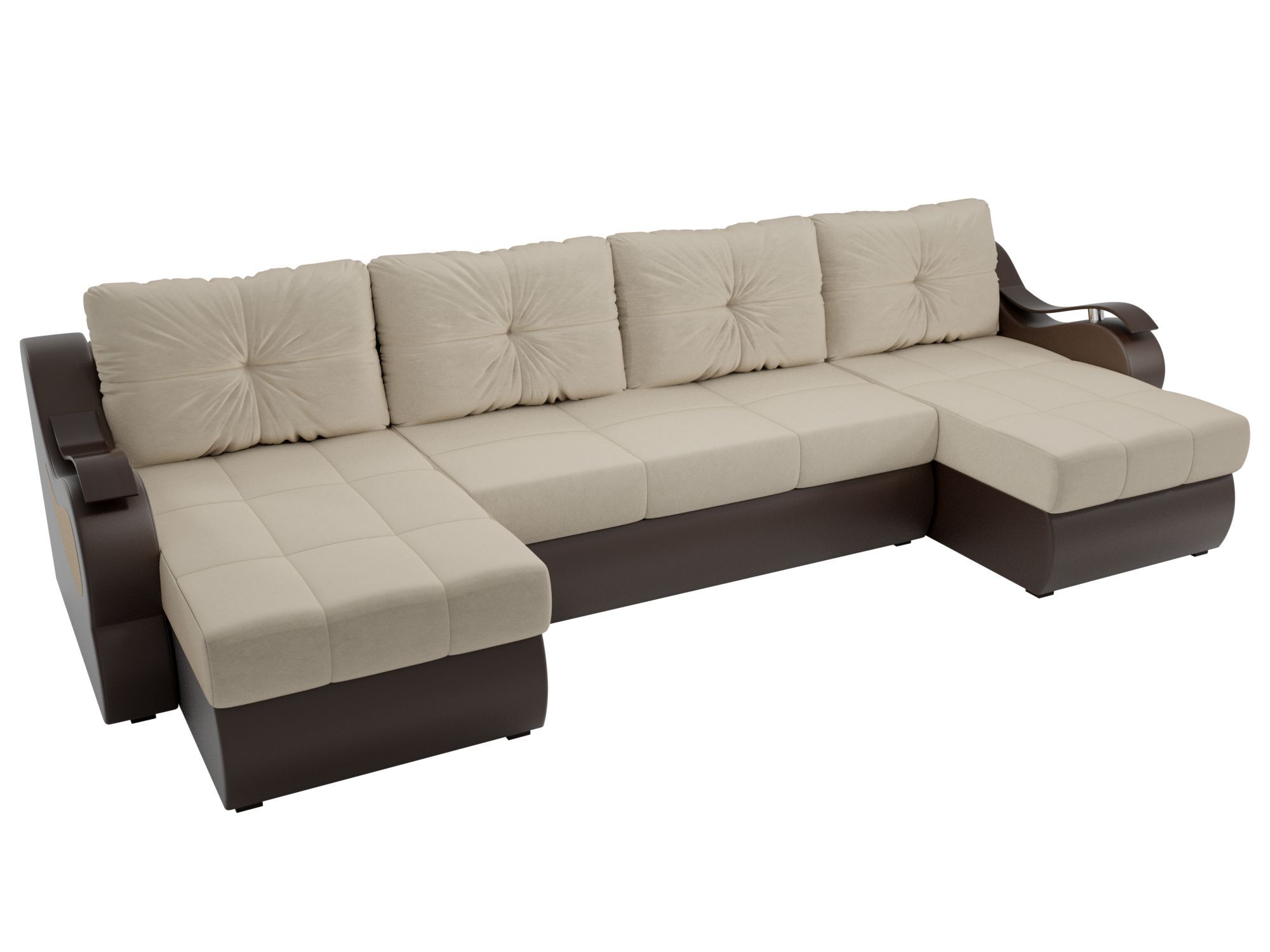 П-образный диван Меркурий Микровельвет\Экокожа бежевый\коричневый
