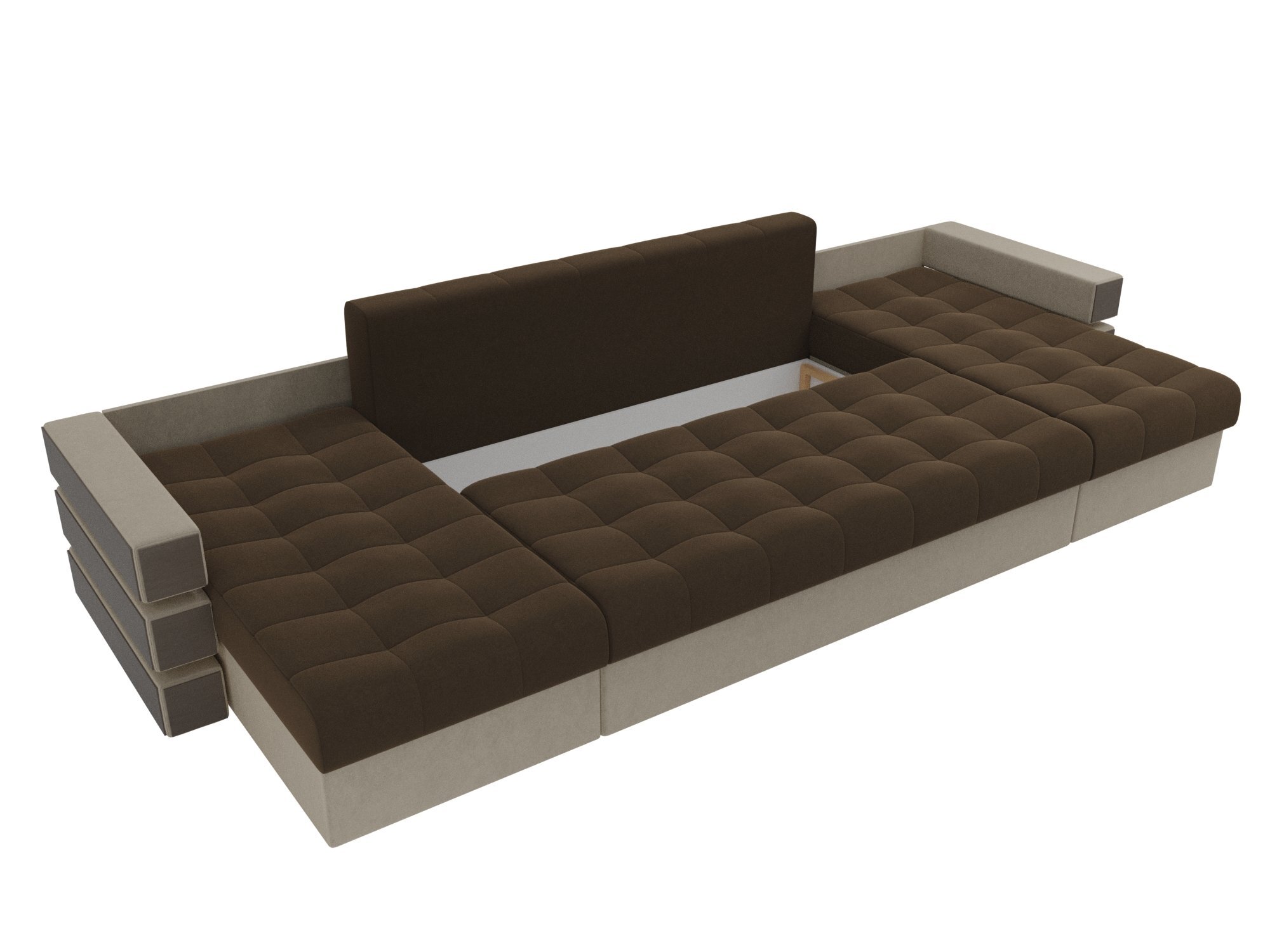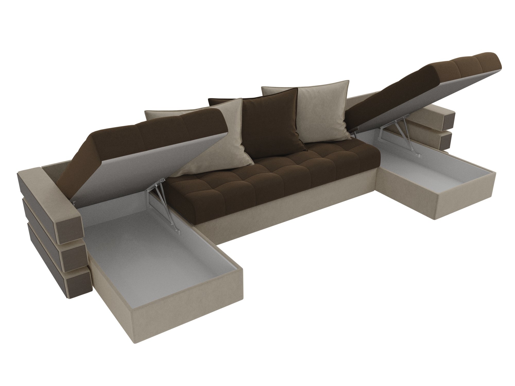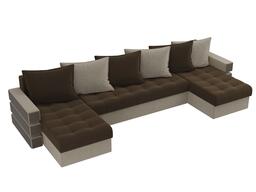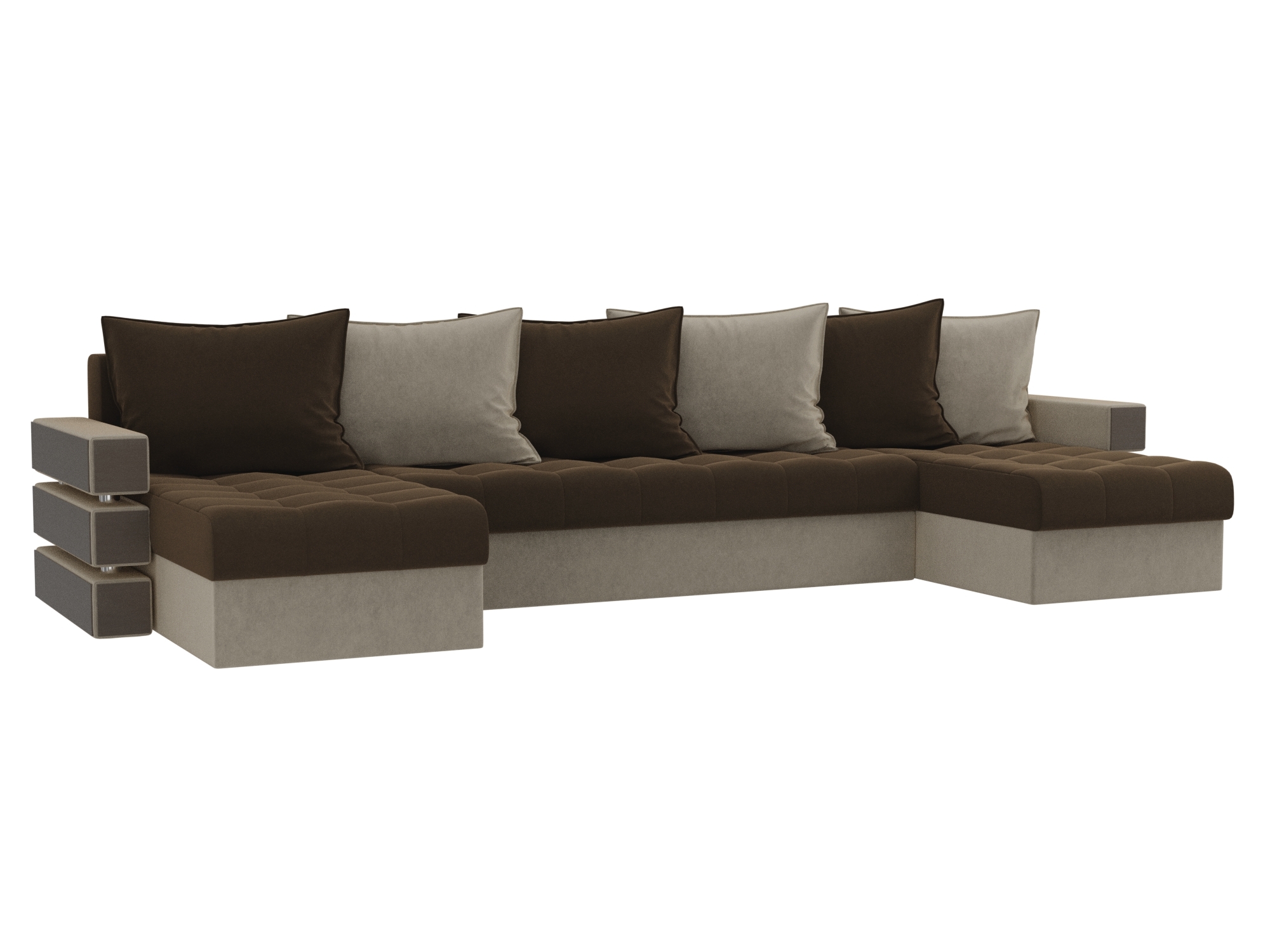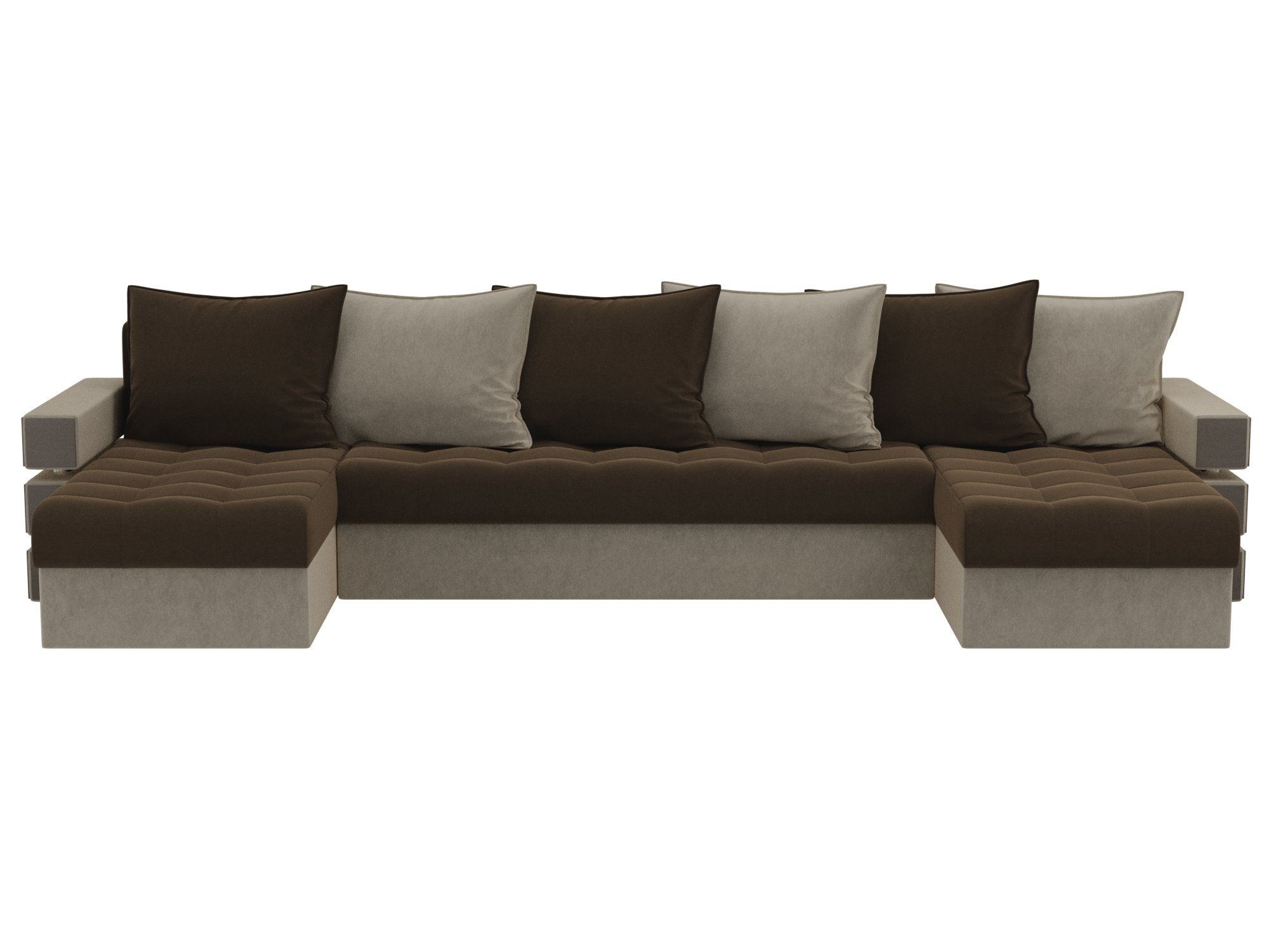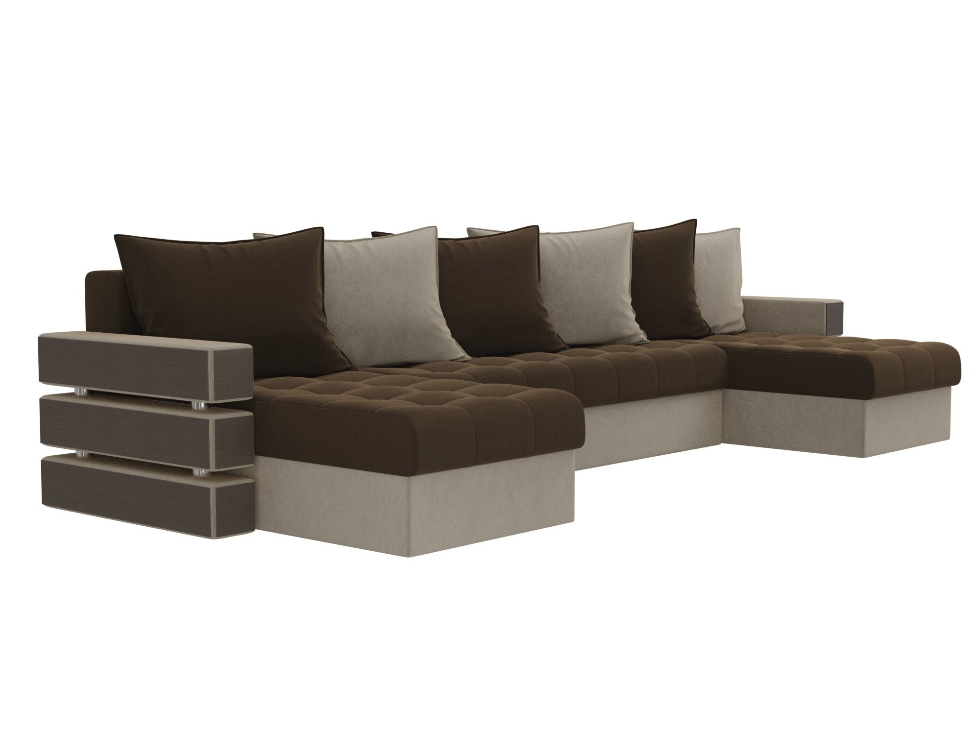 П-образный диван Венеция Микровельвет Коричневый\Бежевый