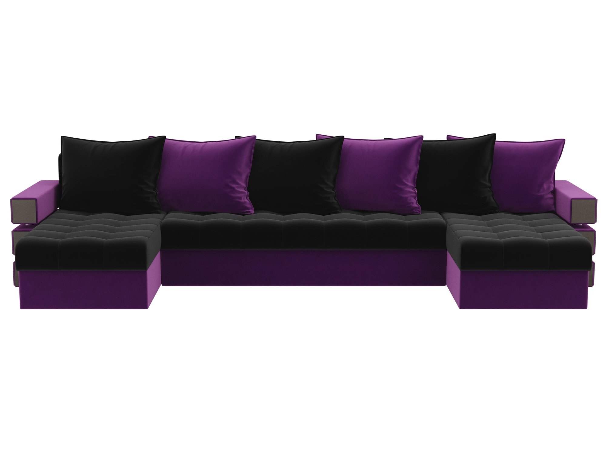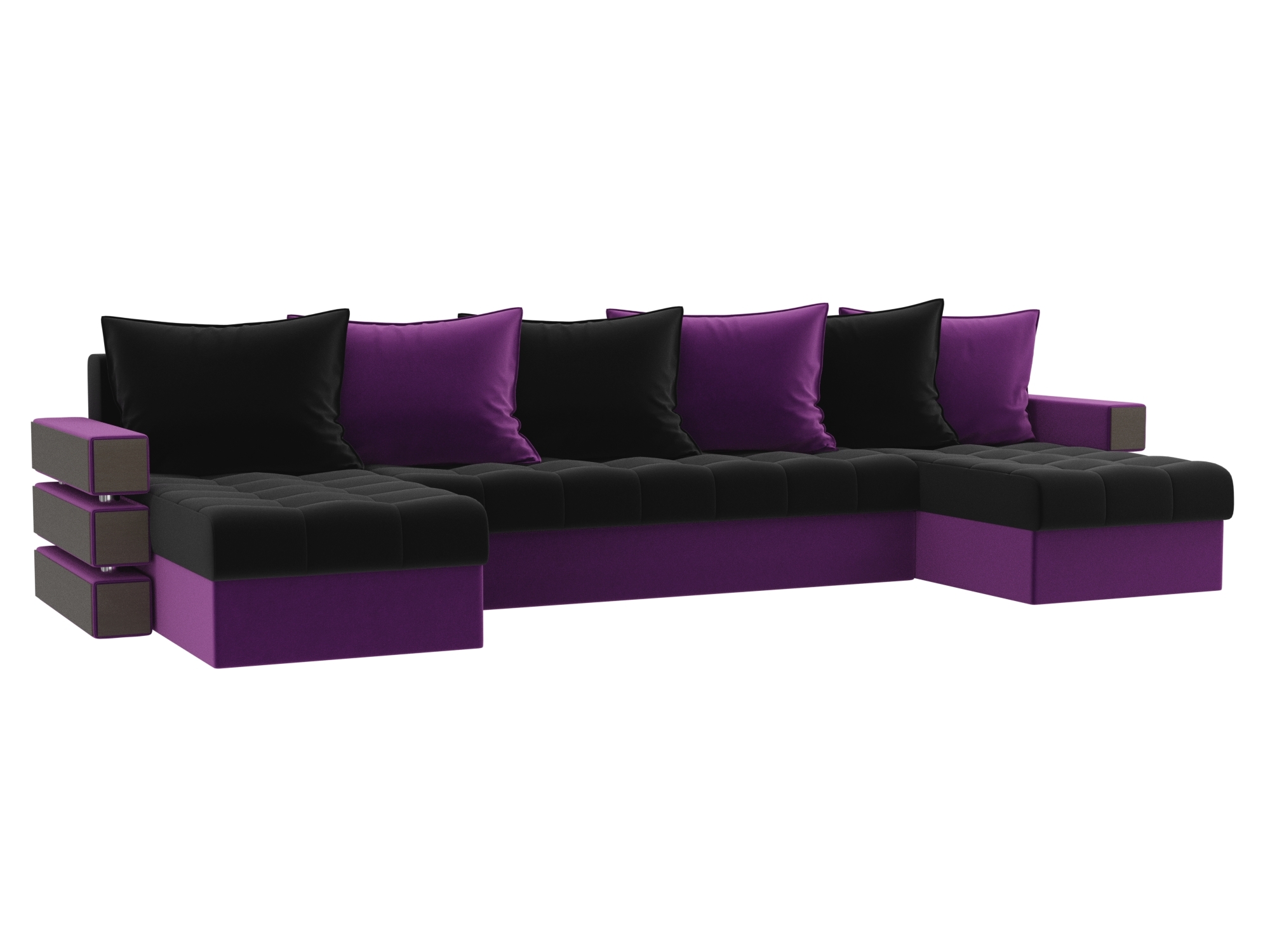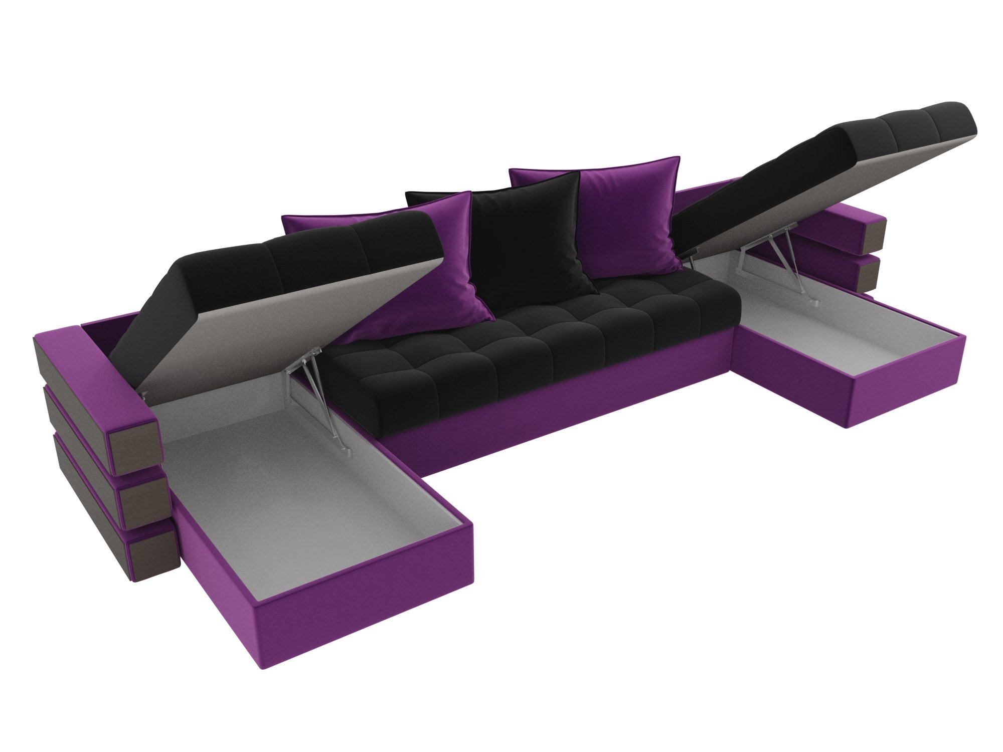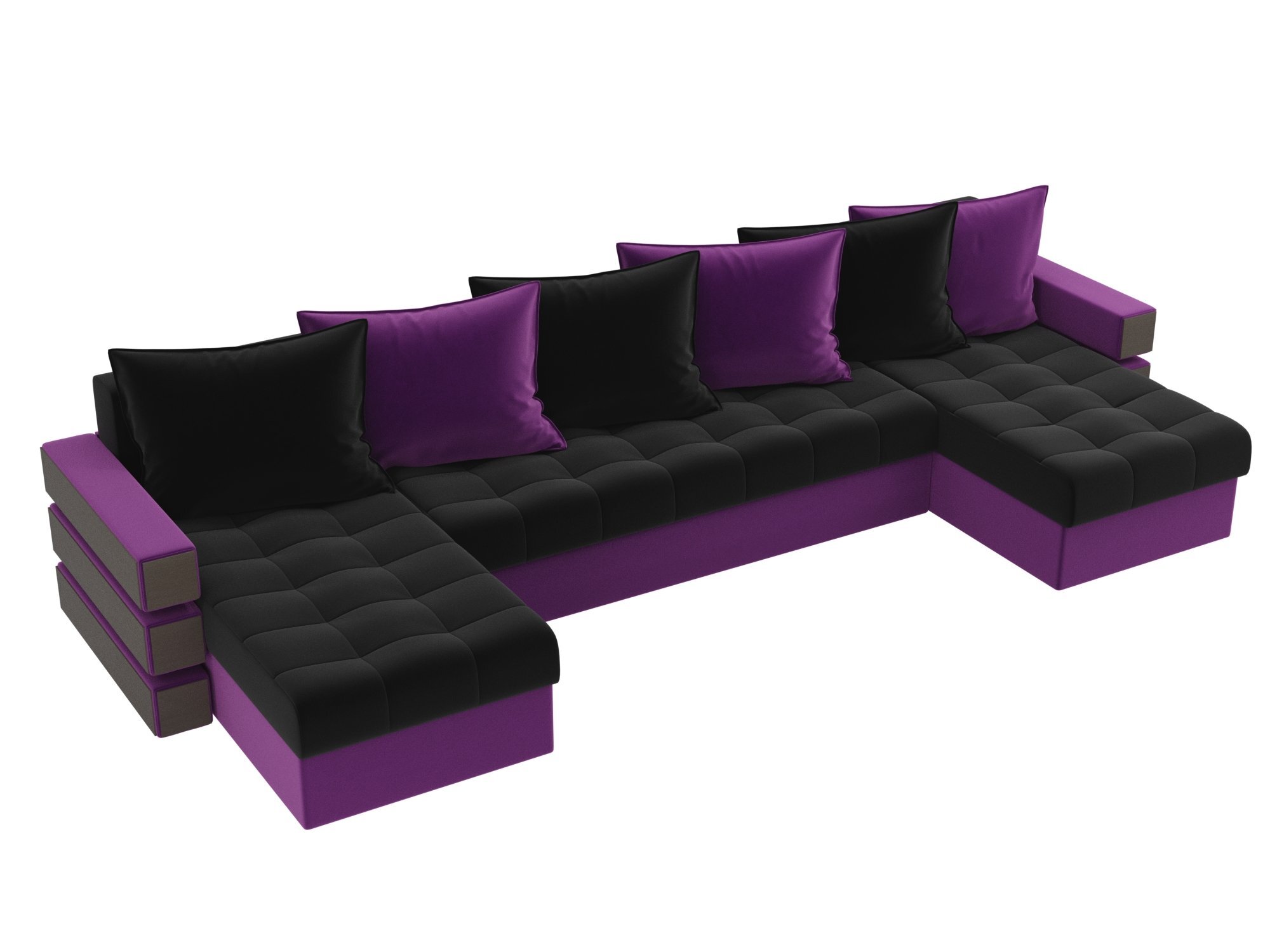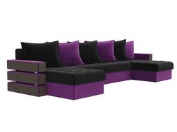 П-образный диван Венеция Микровельвет черный\фиолетовый