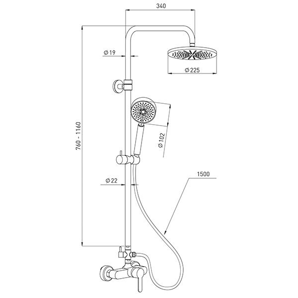 - Количество режимов струи Верхний душ - 1, лейка - 5