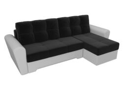 Угловой диван Амстердам Микровельвет\Экокожа Черный\Белый