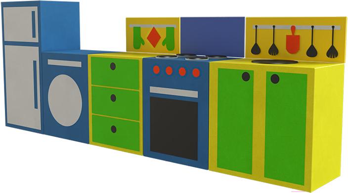 - Высота 80 см (общая, холодильник), 50 см (стиральная машина, шкаф с ящиками, плита, шкаф)