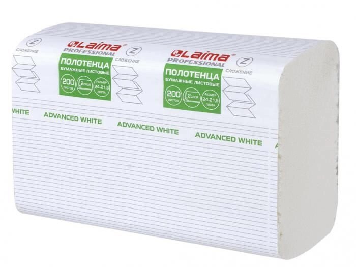 Полотенца бумажные Лайма Advanced White 2-слойные 24х21.5cm 200шт 111338