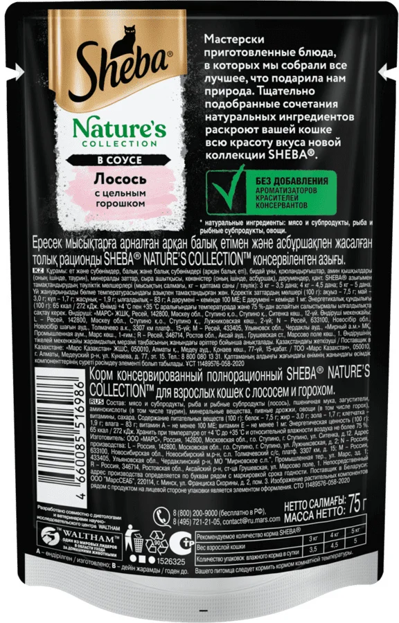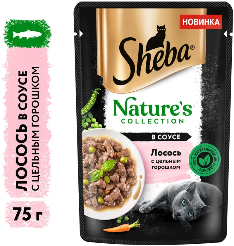 Паучи Sheba Nature's Collection с лососем и горохом для кошек