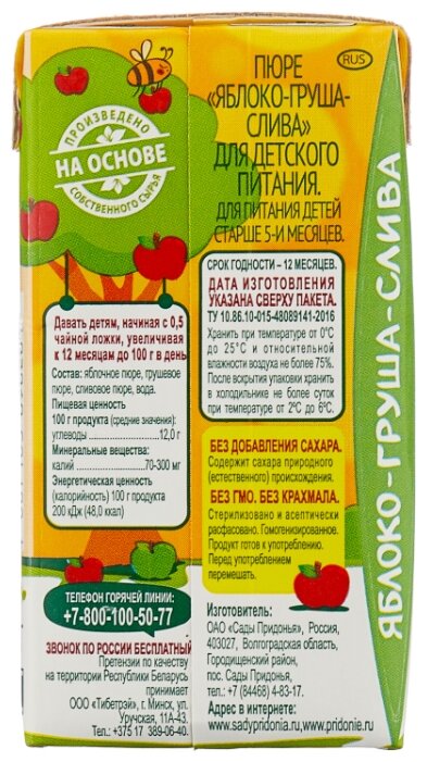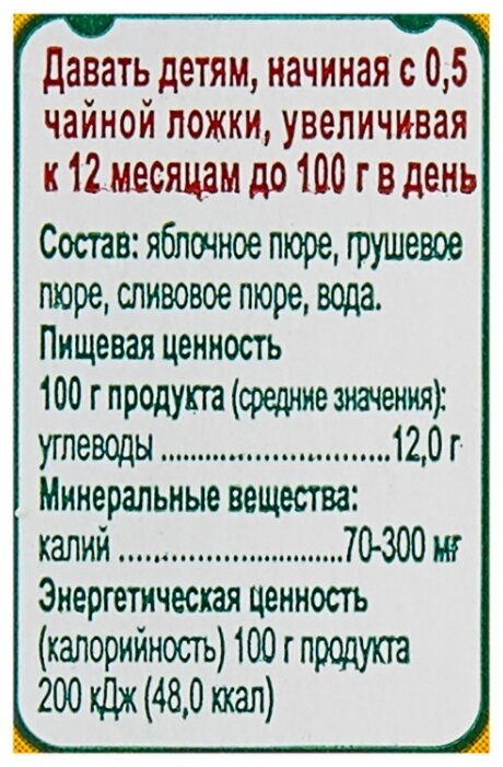 - Состав яблочное пюре, грушевое пюре, сливовое пюре, вода