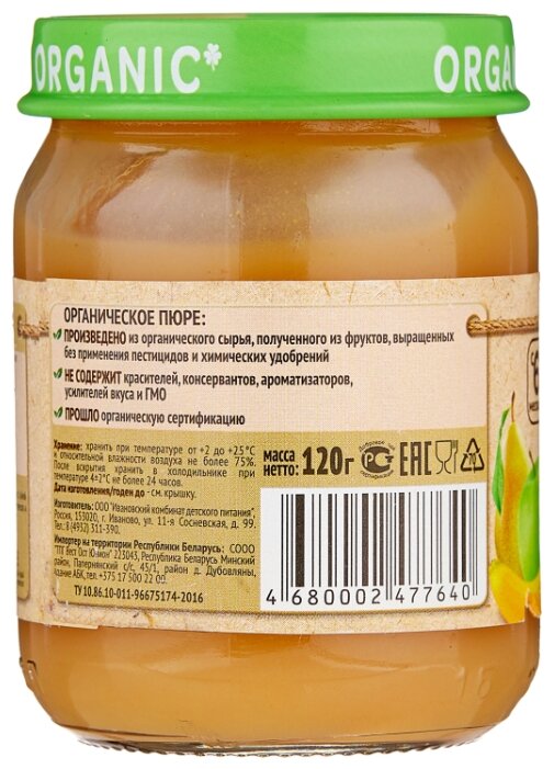 - Состав пюре органическое из яблок, пюре органическое из груш, пюре органическое из банана, витамин С