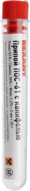 - Состав припоя олово (61%), свинец (39%)