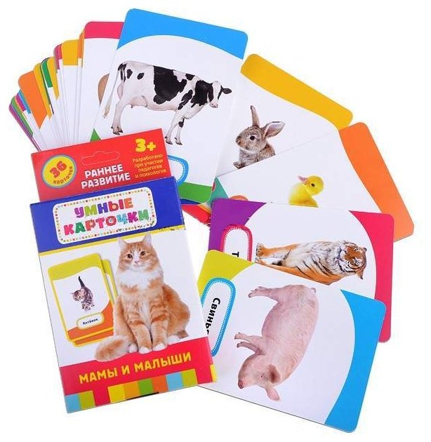 Набор карточек РОСМЭН Умные карточки. Мамы и малыши 16.5x9 см 36 шт.