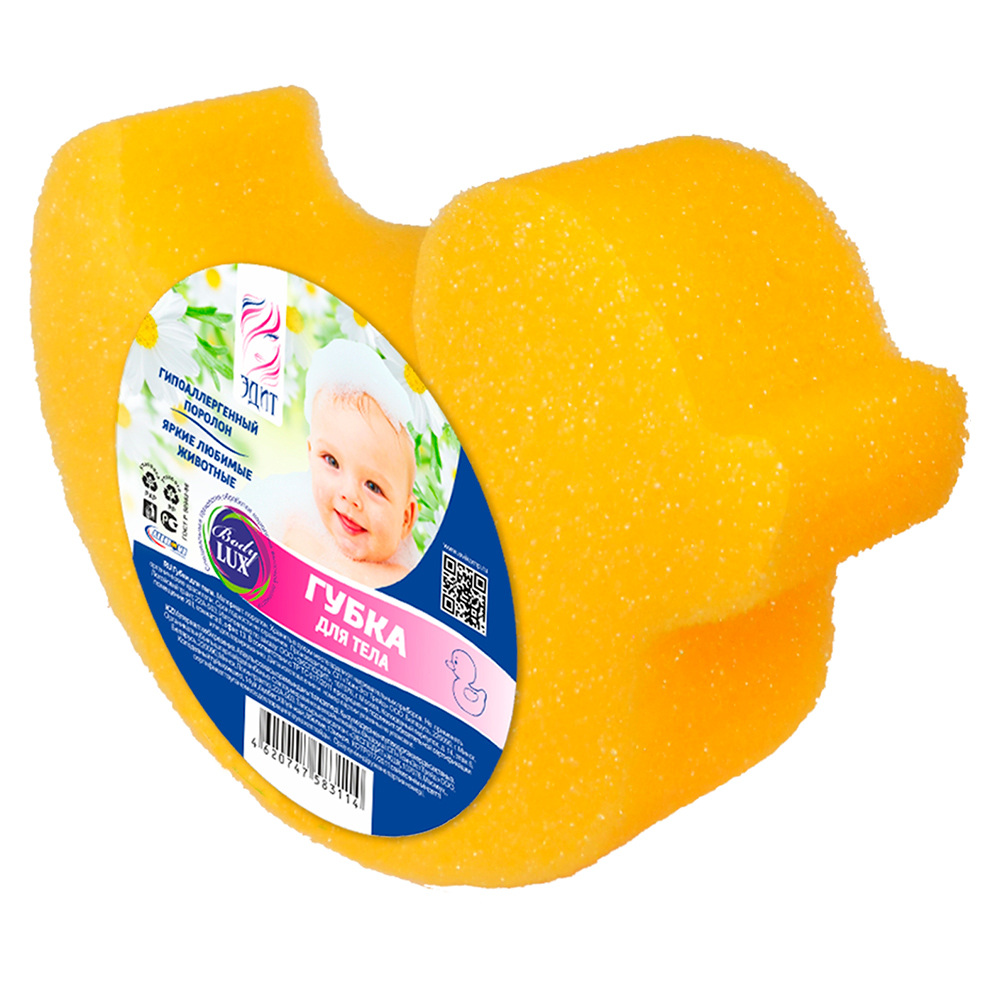 Губка для тела "Уточка" 15х10см жёлтая Avikomp 3114 50070402