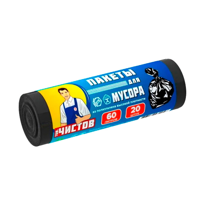 Пакеты для мусора 60л чёрные (20шт.) Тов.Чистов 0056