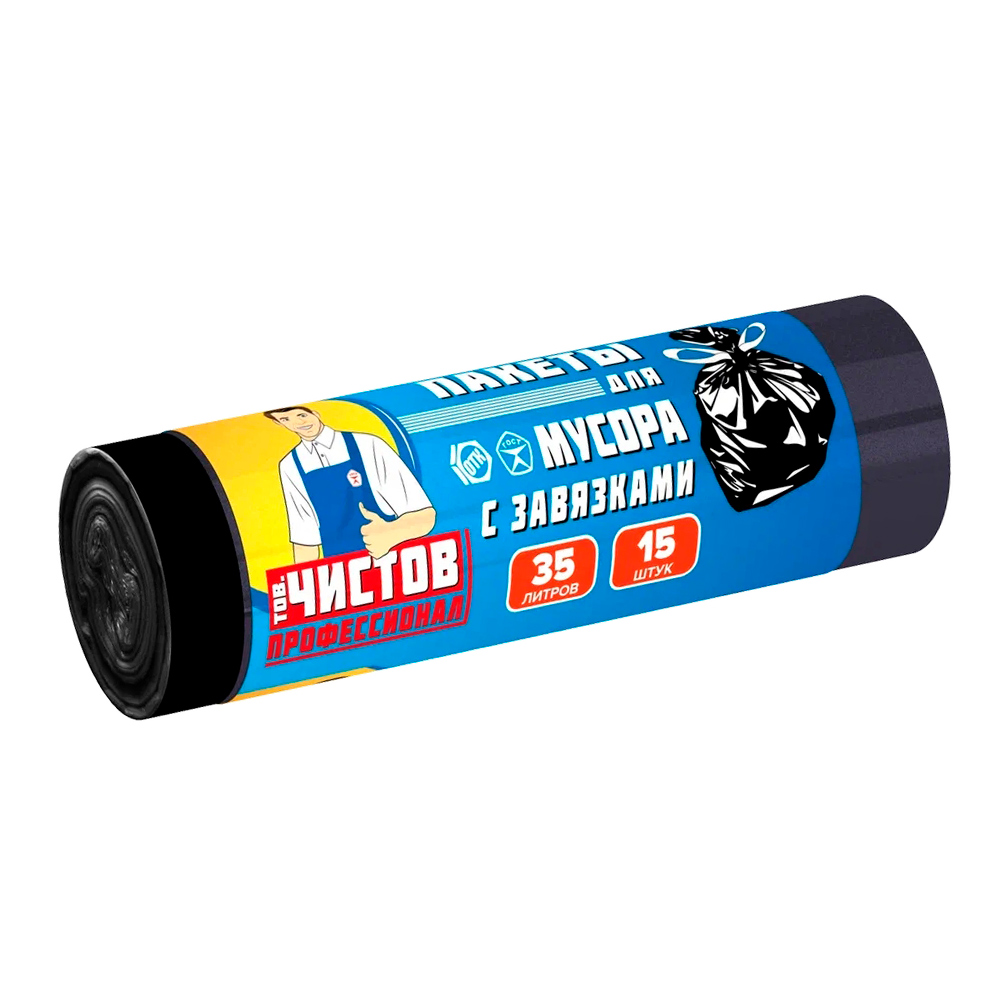 Пакеты для мусора 35л с завязками, чёрные (15шт.) Тов.Чистов 89215