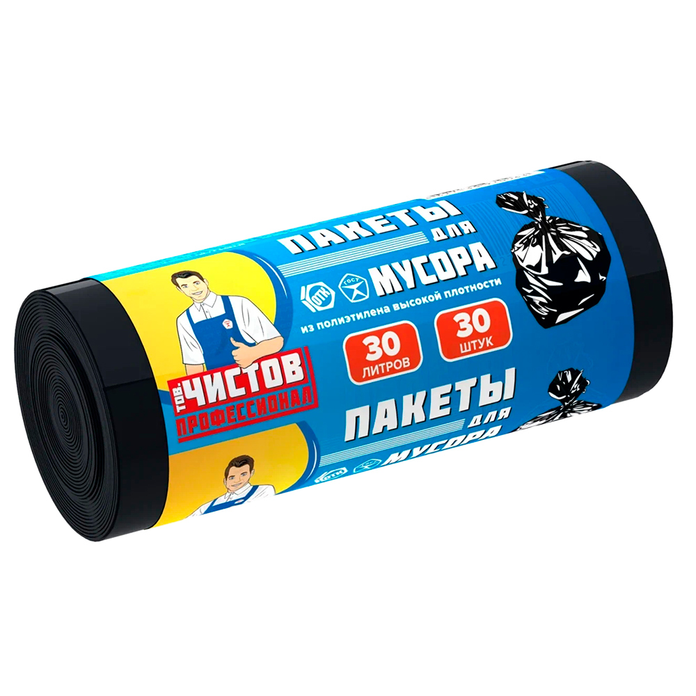 Пакеты для мусора 30л чёрные (30шт.) Тов.Чистов 0063