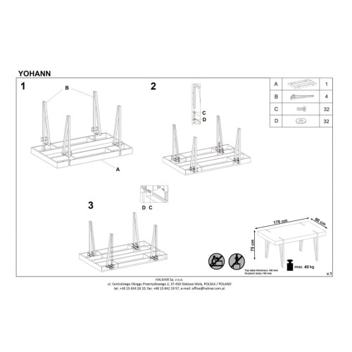 Стол обеденный HALMAR YOHANN дуб сан ремо/черный, 170/90/76