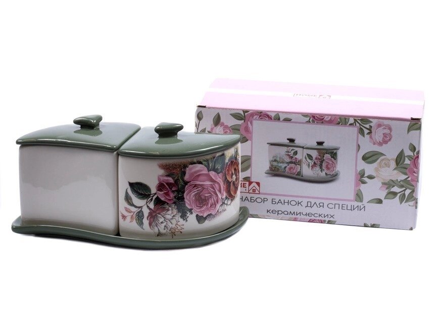 Набор банок для специй керамических цветы 2 шт. 21,8*10,5*11,5 см/600 мл (арт. Hc921-r01, код 181766) Арт.89912