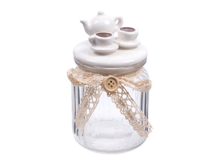Банка для сыпучих продуктов стеклянная с керамической крышкой чаепитие 300 мл (арт. 25560039, код 943701) Арт.88774