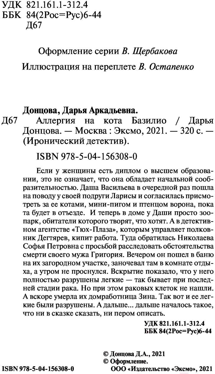 Книга Эксмо Аллергия на кота Базилио (Донцова Д.А.)