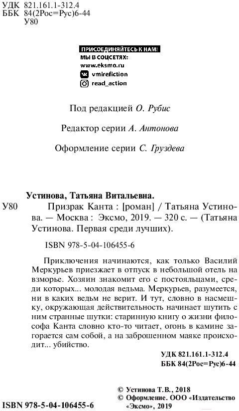 Книга Эксмо Призрак Канта (Устинова Т.В.)