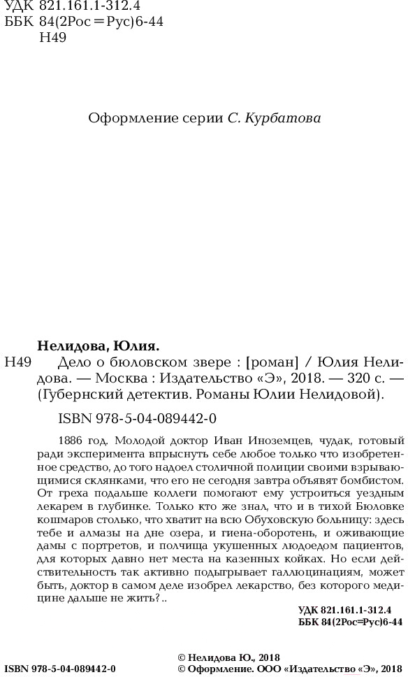 Книга Эксмо Дело о бюловском звере (Нелидова Ю.)