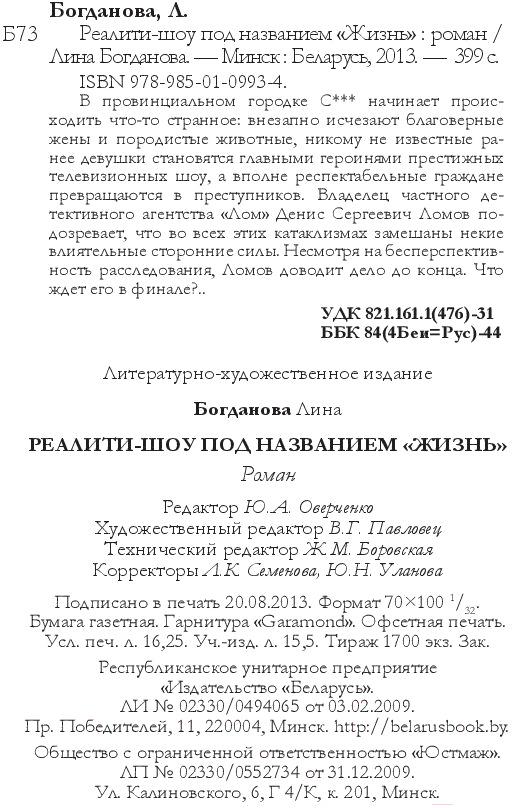 Книга Издательство Беларусь Реалити-шоу под названием Жизнь (Богданова Л.)