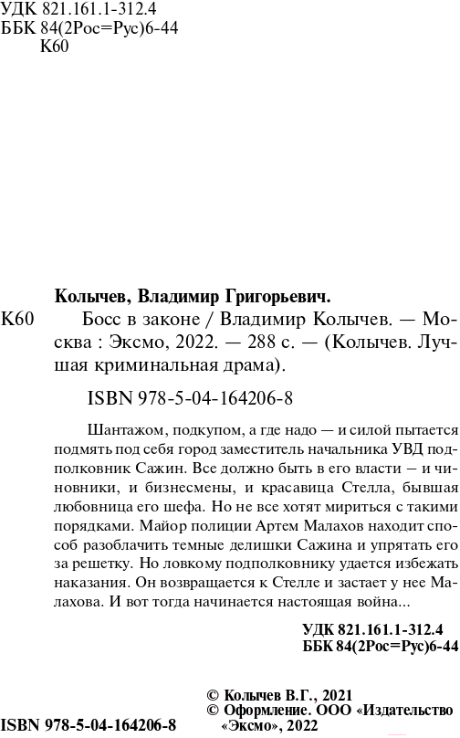 Книга Эксмо Босс в законе (Колычев В.Г.)