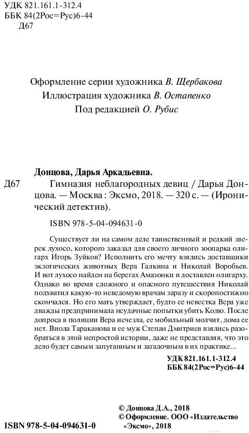 Книга Эксмо Гимназия неблагородных девиц (Донцова Д.А.)