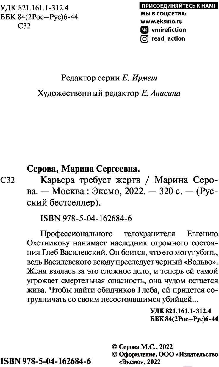 Книга Эксмо Карьера требует жертв (Серова М.С.)