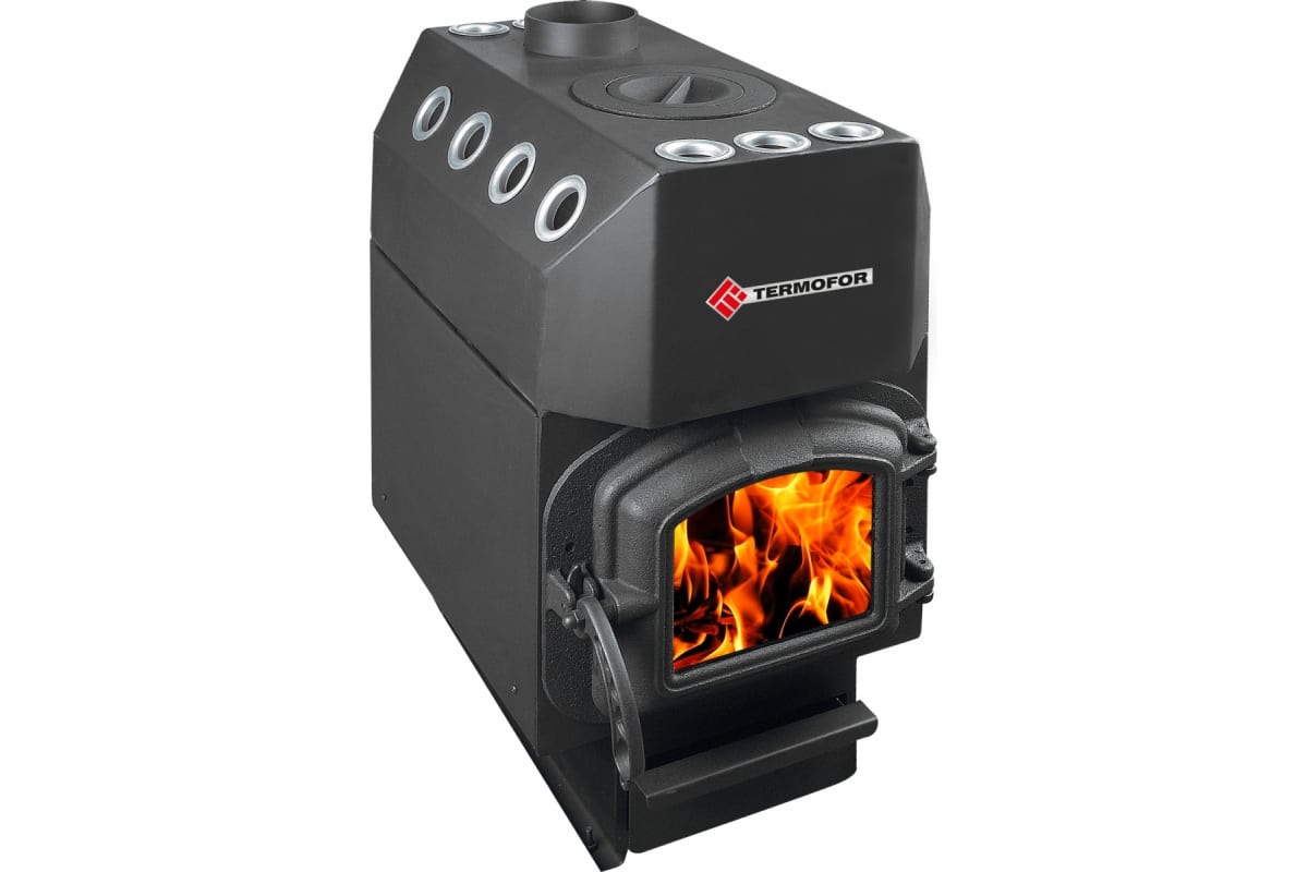 Отопительная печь ТЕРМОФОР Ставр 9, с чугун. кружком и чугун. дверцей, 150 м.куб ТФ29746 с чугунным кружком и чугунной дверцей предназначена для эффективного отопления жилых и производственных помещений, временных домов, гаражей, подвалов, теплиц, а так же для подогрева пищи.