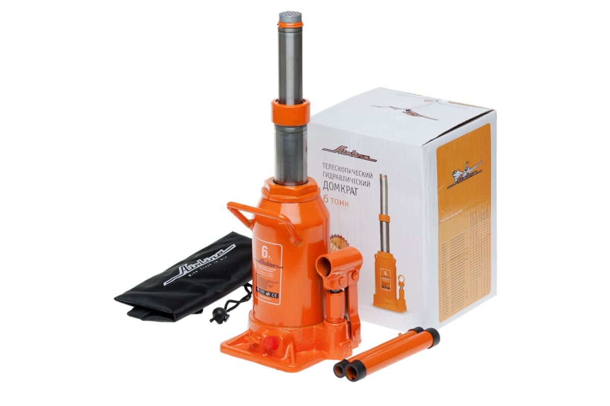 Телескопический домкрат Airline 12 т, в сумке, 230-500 мм AJ-TB-12 позволяет поднять груз на высоту до 500 мм. Благодаря телескопическому штоку его ход увеличивается на 50% по сравнению с обычным 12-ти тонным бутылочным домкратом. При этом сохраняется минимальная высота подхвата, что делает его удобным при использовании для джипов.