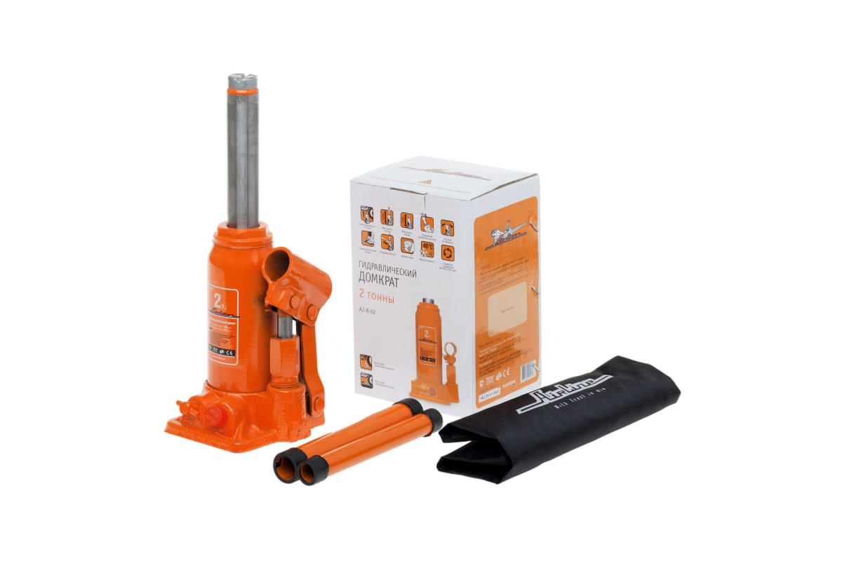 Бутылочный домкрат Airline 2 т, в сумке, 165-315 мм AJ-B-02 обладает простейшей схемой функционирования. Занимает мало места и не требует особых знаний в использовании. Единственное требование – хранение и транспортировка в вертикальном положении. Незаменим при необходимости поднять автомобиль массой до 2 т.