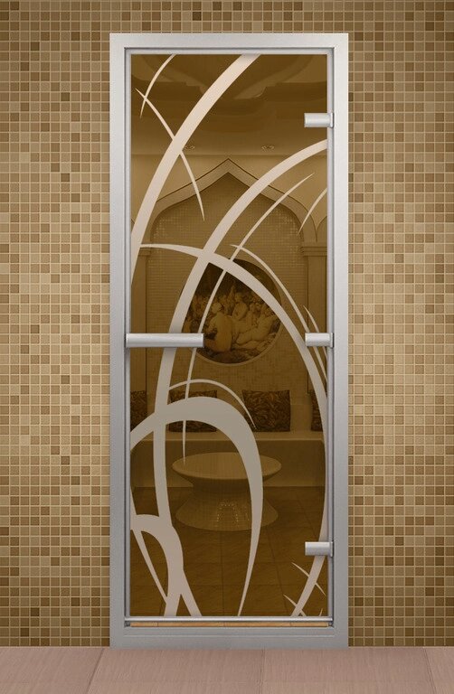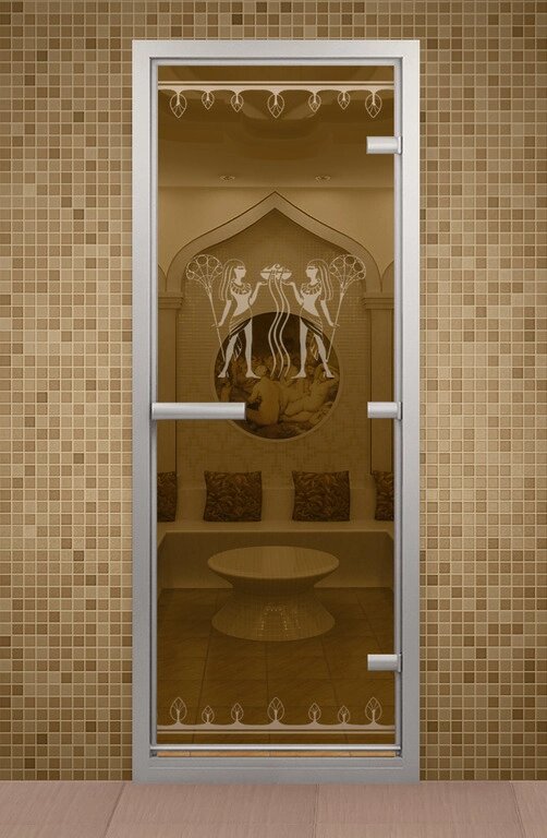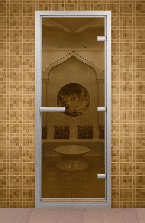 Дверь для турецкой бани и ванной комнаты, с бронзовым стеклом