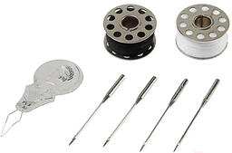 • Дополнительная комплектация комплект игл, шпулька, педаль, нитевдеватель ручной, инструкция, подсветка рабочей зоны (LED)