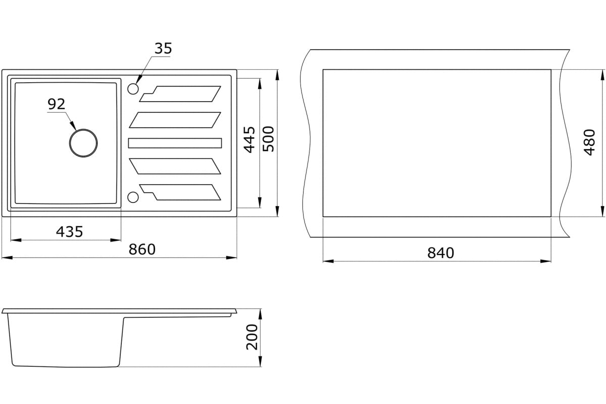 - Длина, мм 860