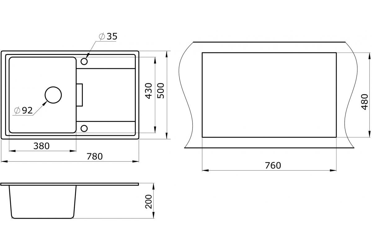 - Глубина чаши, мм 200
