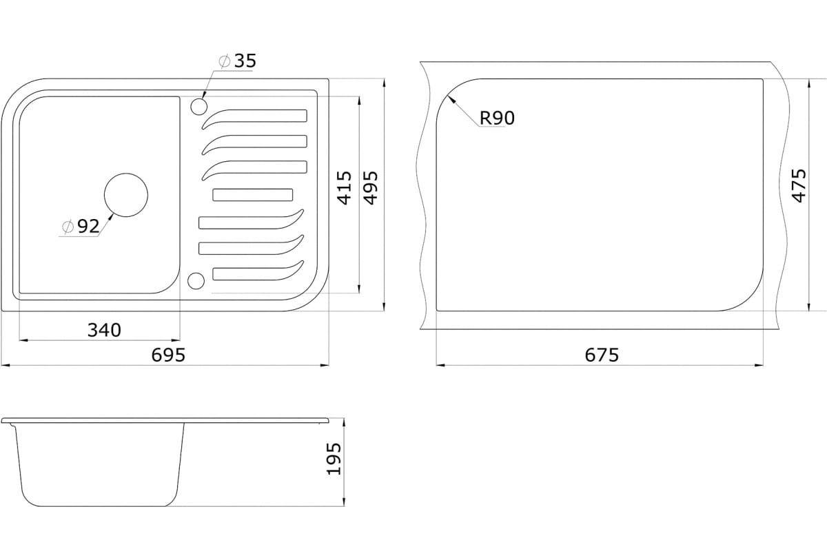 - Диаметр сливного отверстия, дюйм 3 1/2