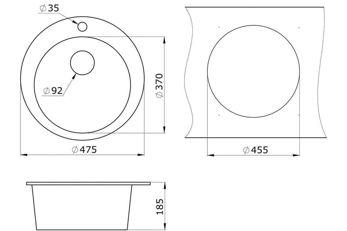 - Глубина чаши, мм 175