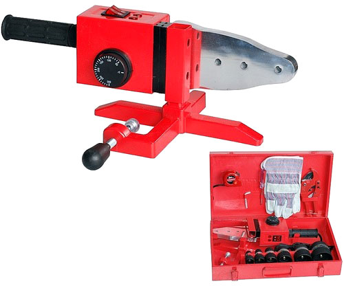 Аппарат для сварки полипропиленовых труб потребляемой мощностью 1500 Вт. Максимальная температура 300 °С. Комплектация: сменные насадки (диаметры: 20,25,32,40,50,63 мм). Вес 1,2 кг.