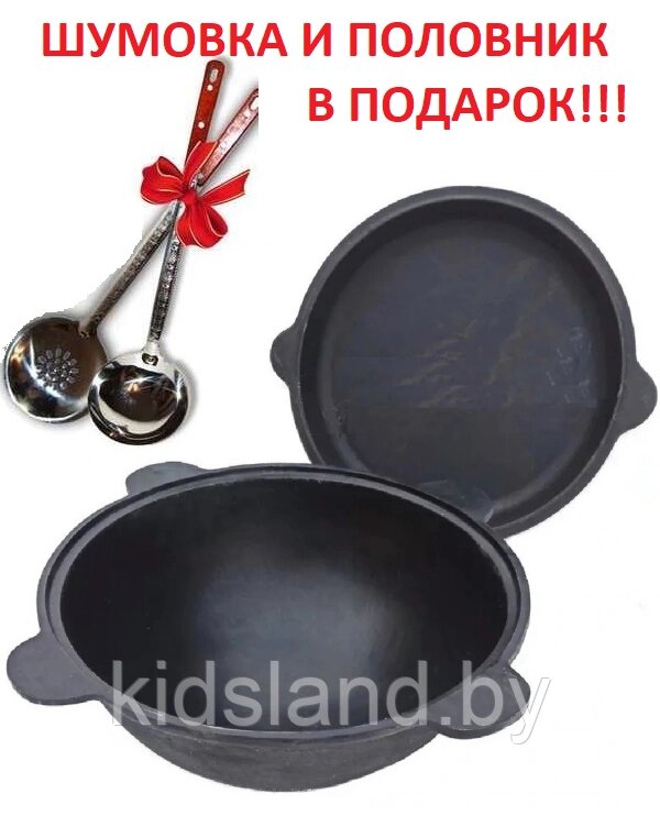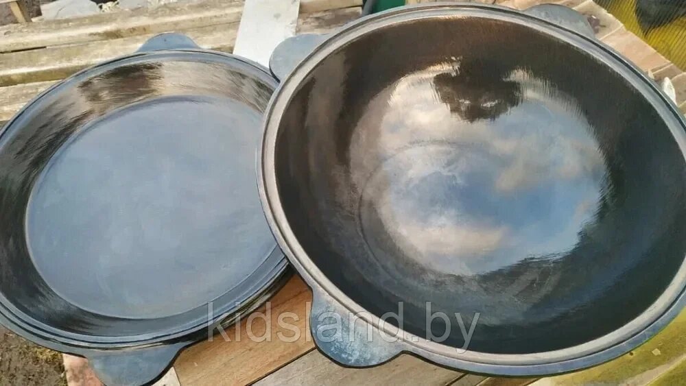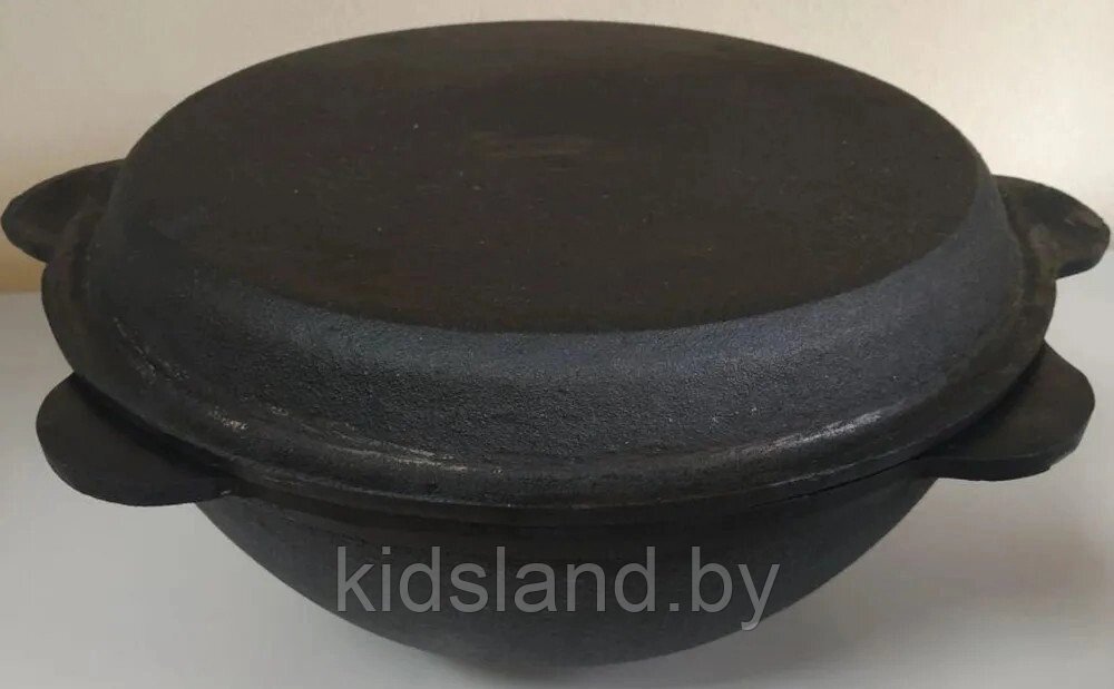 Узбекский казан чугунный 12 литров с крышкой-сковородой (круглое дно). Наманган