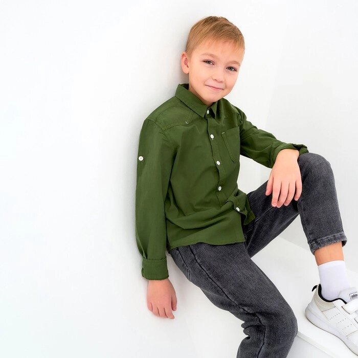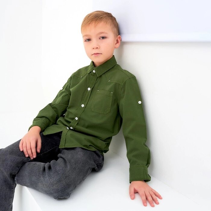 Рубашка для мальчика, цвет хаки, рост 122 см