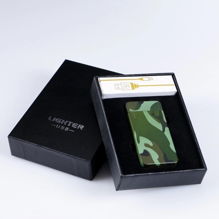 Зажигалка электронная в подарочной коробке, USB, дуговая, цвет хаки, 3.5х7 см