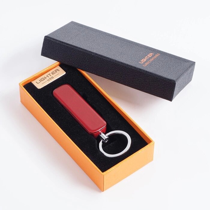 Зажигалка электронная в подарочной коробке, фонарик, USB, спираль, 6х12 см, красная