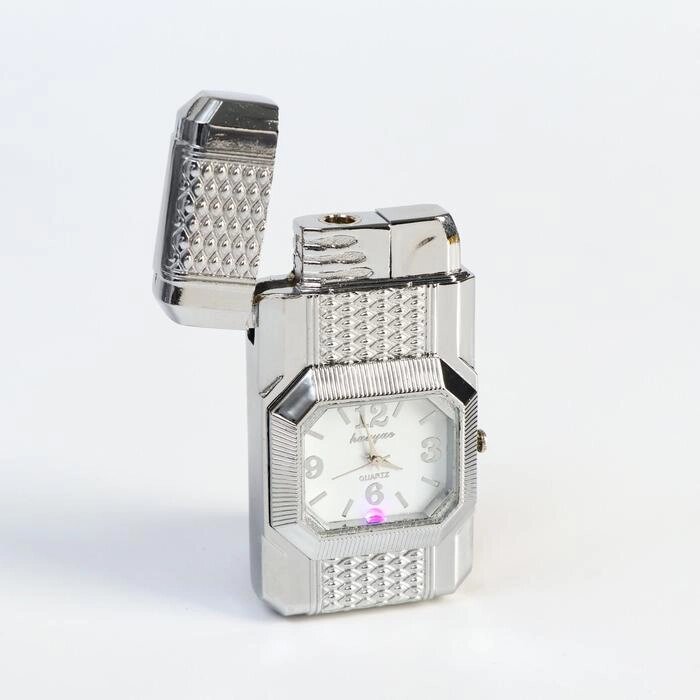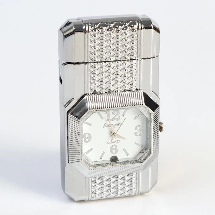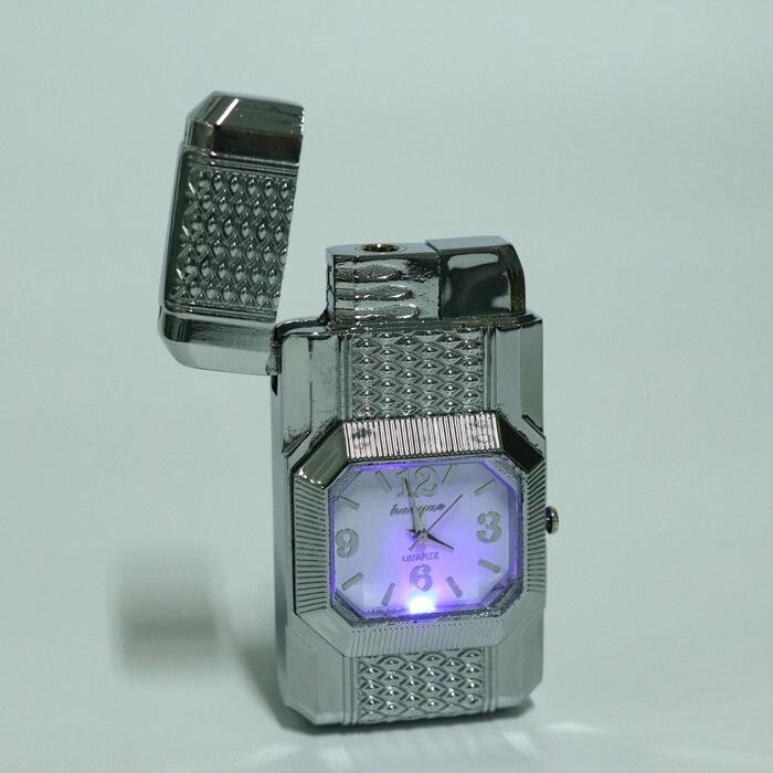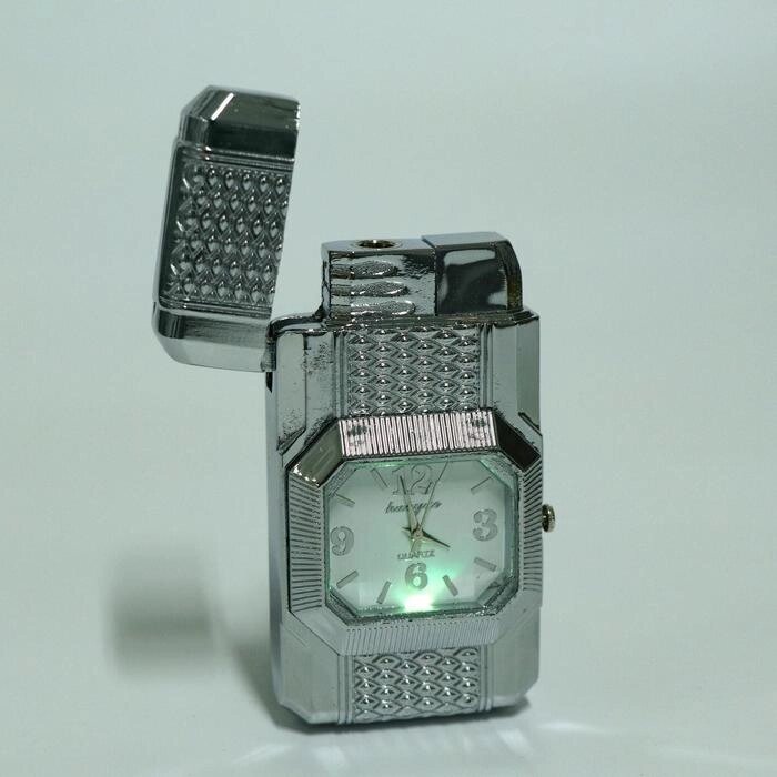 Зажигалка "Часы на ремешке" в мешочке, пьезо, газ, серебристая