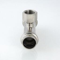 ОписаниеПресс-тройник из нержавеющей стали с внутренней резьбой обеспечивает соединение тонкостенной стальной трубы с резьбовым элементом монтируемой системы. Область применения – трубопроводы водоснабжения, отопления, иные инженерные и технологические установки с рабочей температурой до 95 °С и давлением до 16 бар. Резбовой переходник VTi.932.I изготовлен из стали AISI 304. Материал уплотнения – эластомер EPDM Sh70. Пресс-соединение – бесштуцерное. Обжатие производится с помощью пресс-инструмента V-профиля. Шестигранный – под гаечный ключ – участок корпуса облегчает монтаж резьбового соединения. размер 28х1/2"