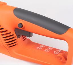 Цепная электропила с двигателем мощностью 1800 Вт. Объем масляного бака 0,11 л. Шаг цепи 3/8". Длина шины 400 мм. Механический инерционный тормоз цепи. Автоматическая смазка цепи. Щиток для защиты правой руки. Масса 4,1 кг.