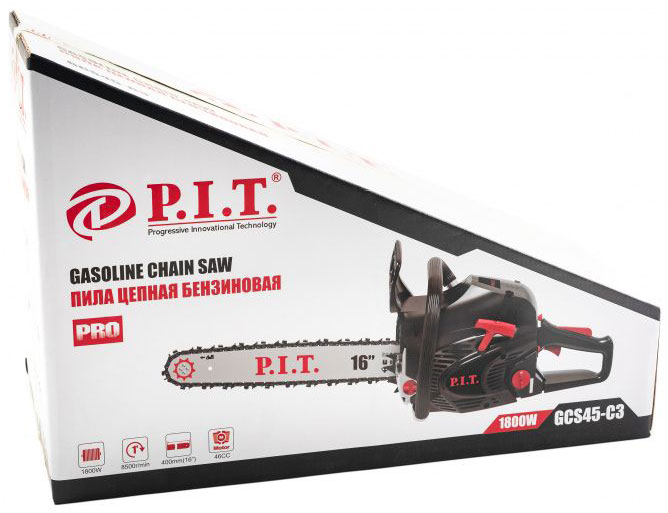 Полупрофессиональная пила, объем двигателя 46 см3, мощность 1.8 кВт, емкость топливного бака 0.55 л, емкость масляного бака 0.26 л, длина шины 40 см, легкий пуск, тормоз цепи, антивибрационная система.