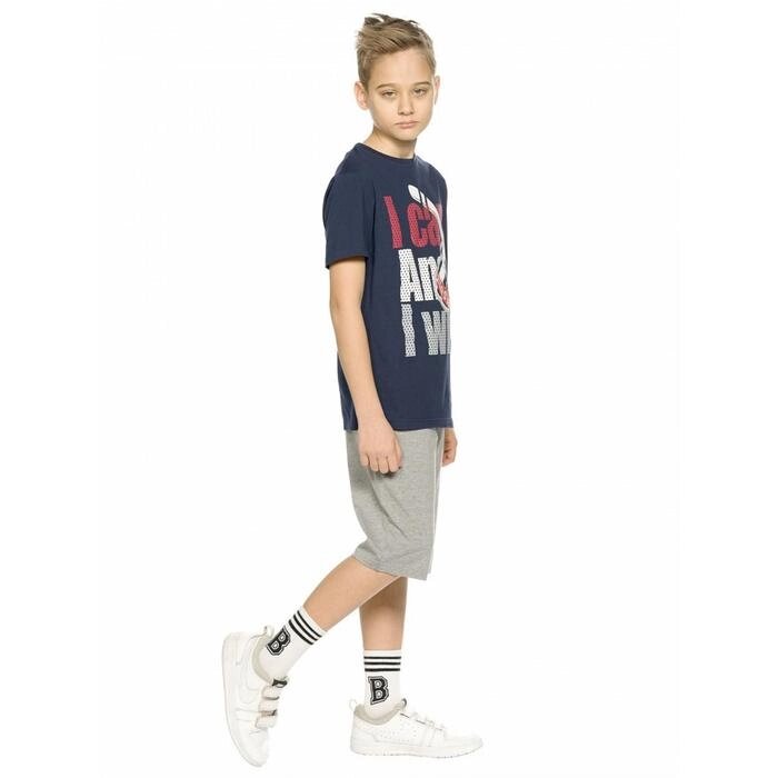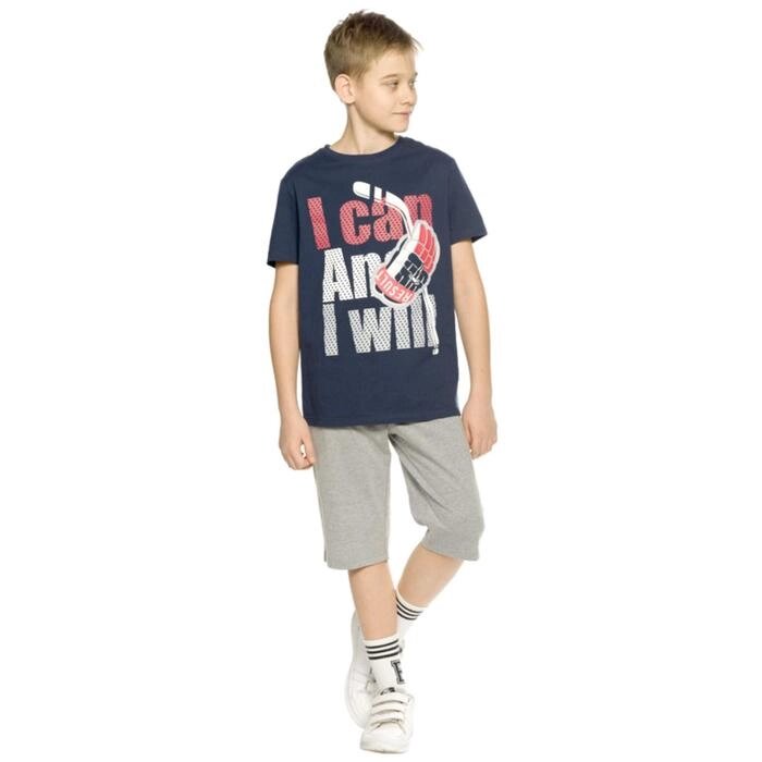 Комплект из футболки и бриджей для мальчиков, рост 134 см, цвет тёмно-синий