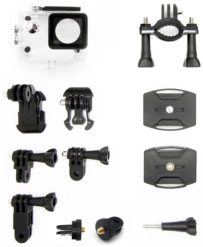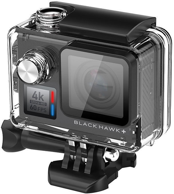 KomplekteGoXtreme Black Hawk+ 4K kamera. Vandeniui atsparus dėklas. Tvirtinimas prie šalmo. Adapteris stovui. Akumuliatorius. USB laidas. Naudotojo vadovas.