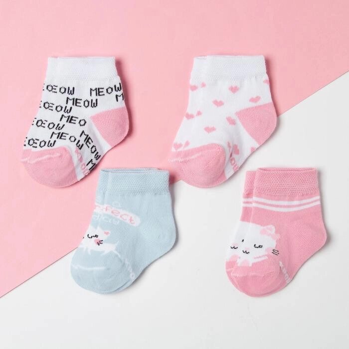 Набор носков Крошка Я "Котик", 4 пары, 10-12 см