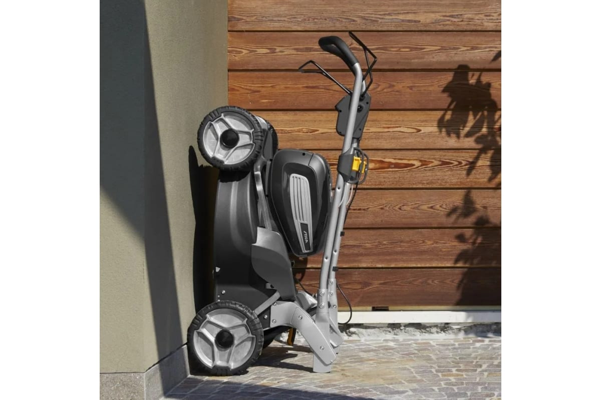 Препятствия в саду теперь тоже не проблема, ведь изделие оборудовано невероятно прочными алюминиевыми колпаками и рукояткой для переноски, а также защитой от повреждений спереди.