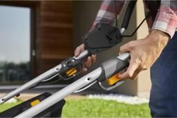 Опустошать 70-литровый травосборник теперь просто, благодаря системе OneMotion, которая позволяет отсоединить и повторно присоединить травосборник одним движением руки.