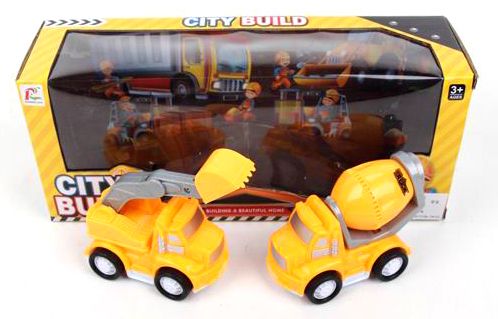 Строительная техника. В наборе две машинки: с ковшом и цементовоз. Машинки выполнены из яркого, качественного пластика. Коробка, 29х8,5х12,5 см.